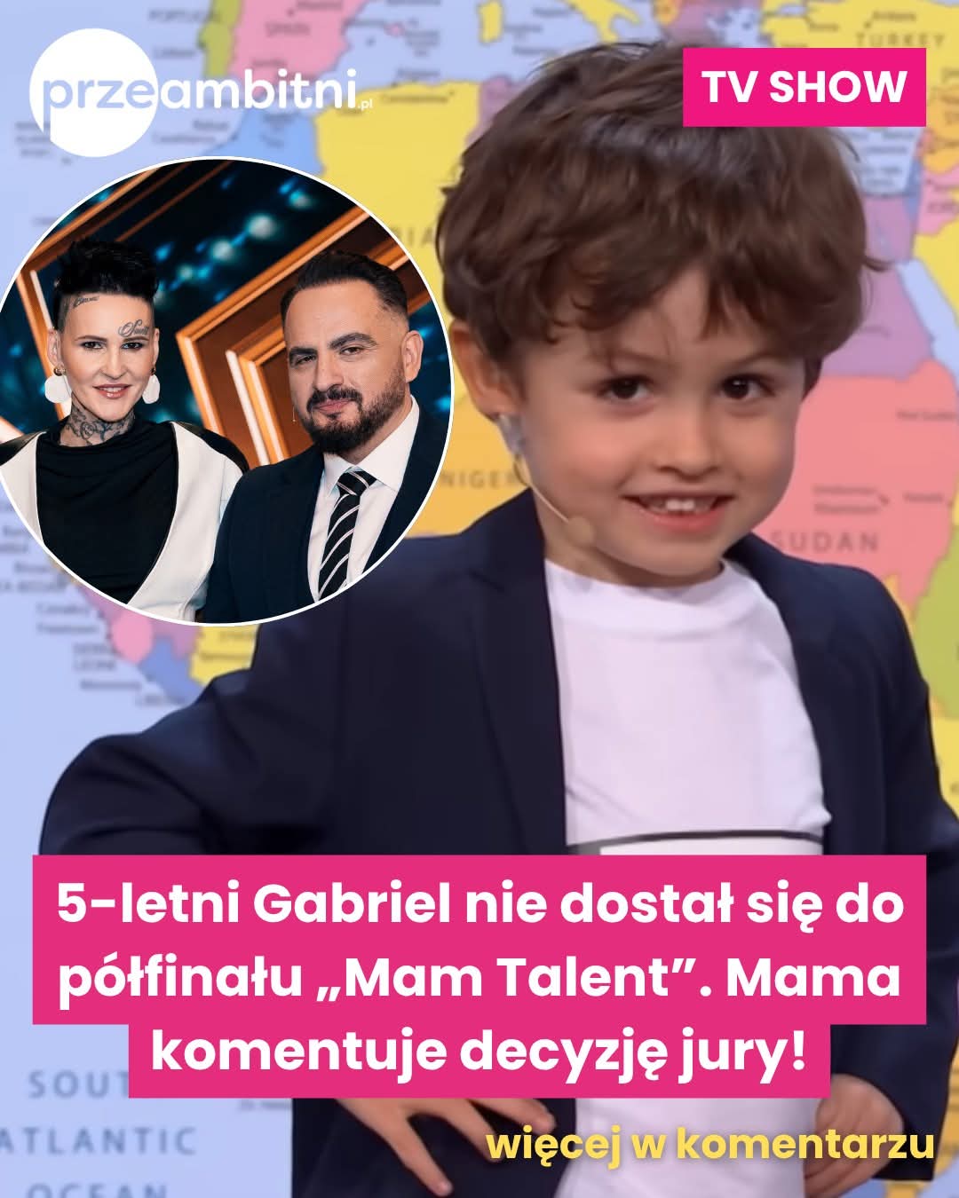 W jednym z ostatnich odcinków 17. edycji „Mam talent!” pojawił się niezwykły uczestnik – pięcioletni Gabriel Kuliberda, który zachwycił jurorów i publiczność swoją wiedzą o flagach świata. Choć zdobył cztery głosy na „tak”, nie znalazł się wśród półfinalistów, co wywołało burzę komentarzy w sieci. Dowiedz się więcej, co o tej decyzji myśli mama młodego uczestnika!
