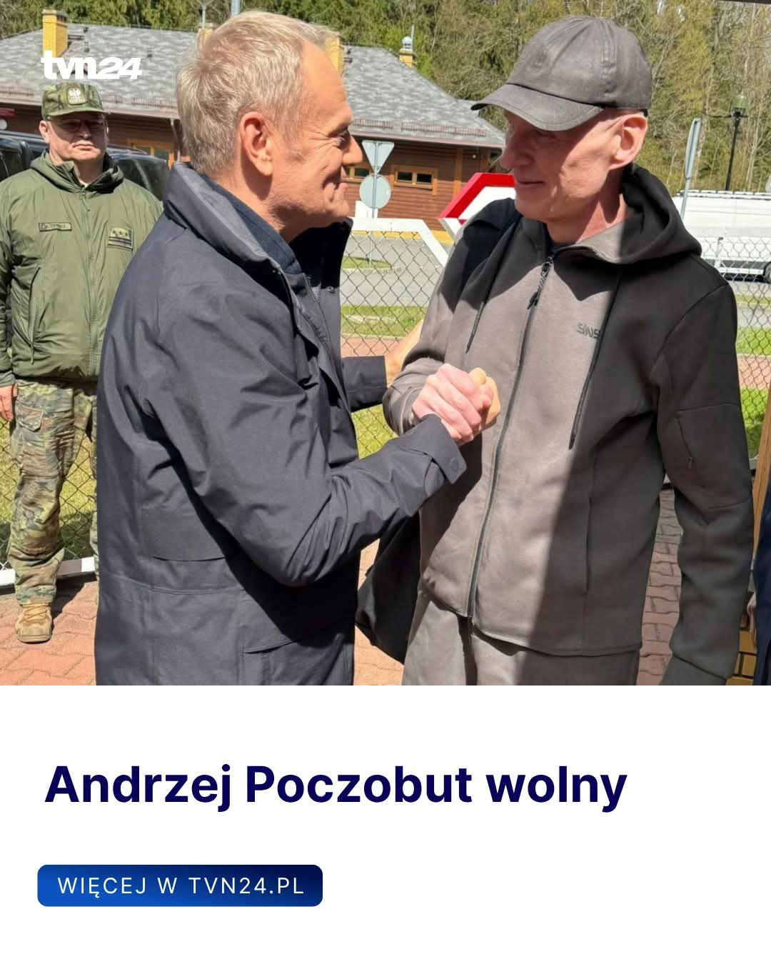 Następnie Tusk opublikował kolejne zdjęcie z Poczobutem i opisał krótką wymianę zdań. “Niezłomny. ‘Będę mógł tam wrócić?’ – to były jego pierwsze słowa. ‘Tylko ty decydujesz. Jesteś już wolnym człowiekiem’ – odpowiedziałem”.
