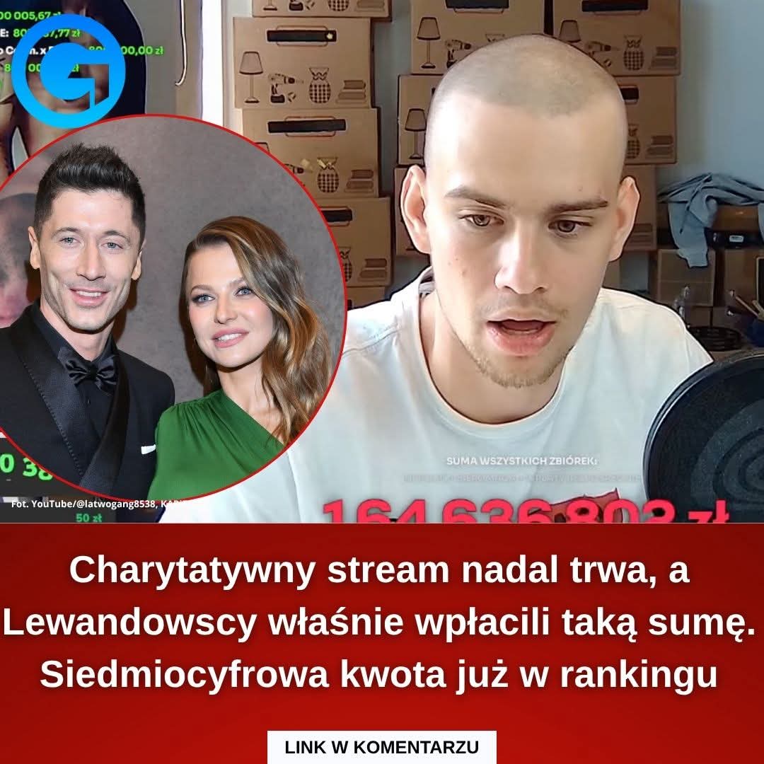 Trwa 9-dniowy stream charytatywny ŁatwoGanga na YouTube na rzecz fundacji Cancer Fighters. Zebrano już ponad 174 mln zł, a transmisję w szczycie oglądało ponad milion osób jednocześnie. W ostatnich godzinach do zbiórki dołączyli Ania i Robert Lewandowscy, wpłacając 1 mln zł.