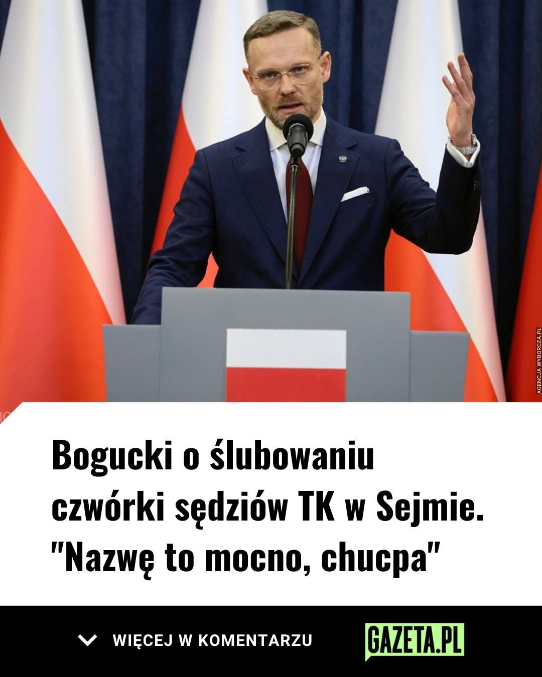 Bogucki o ślubowaniu czwórki sędziów TK w Sejmie. “Nazwę to mocno, chucpa”