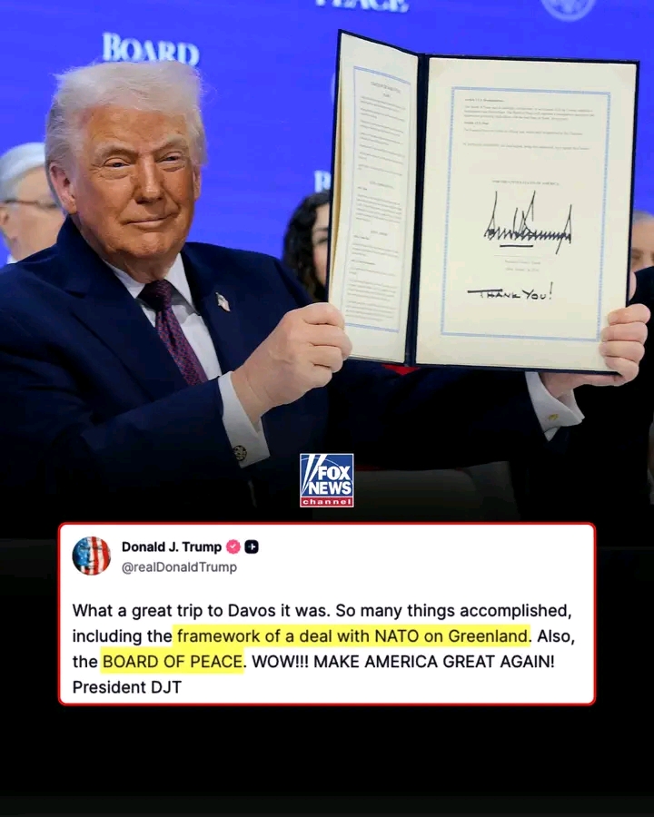 MILESTONES MADE: President Trump highlights a pair of diplomatic achievements from his trip to Davos, including the creation of the “Board of Peace” and a “framework” for a deal with NATO on Greenland.