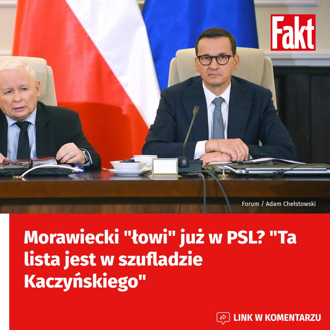 — Nie uważam, żeby Morawiecki mógł coś “złowić” w PSL. On może “łowić” w PiS, a nie na zewnątrz. Ale on i tak się od PiS odłączy i pójdzie w kierunku centrum, ze swoim potencjałem, który — trzeba uczciwie powiedzieć — przecież ma — mówi “Faktowi” ważny polityk PSL, gdy pytamy, czy ludzie byłego premiera kuszą ludowców wizją wspólnego budowania alternatywy w centrum sceny politycznej. — Jego ludzie, zapisując się do tego stowarzyszenia, mocno się “wystawili”. Ta lista jest w szufladzie Kaczyńskiego — przestrzega posłów PiS nasz rozmówca.