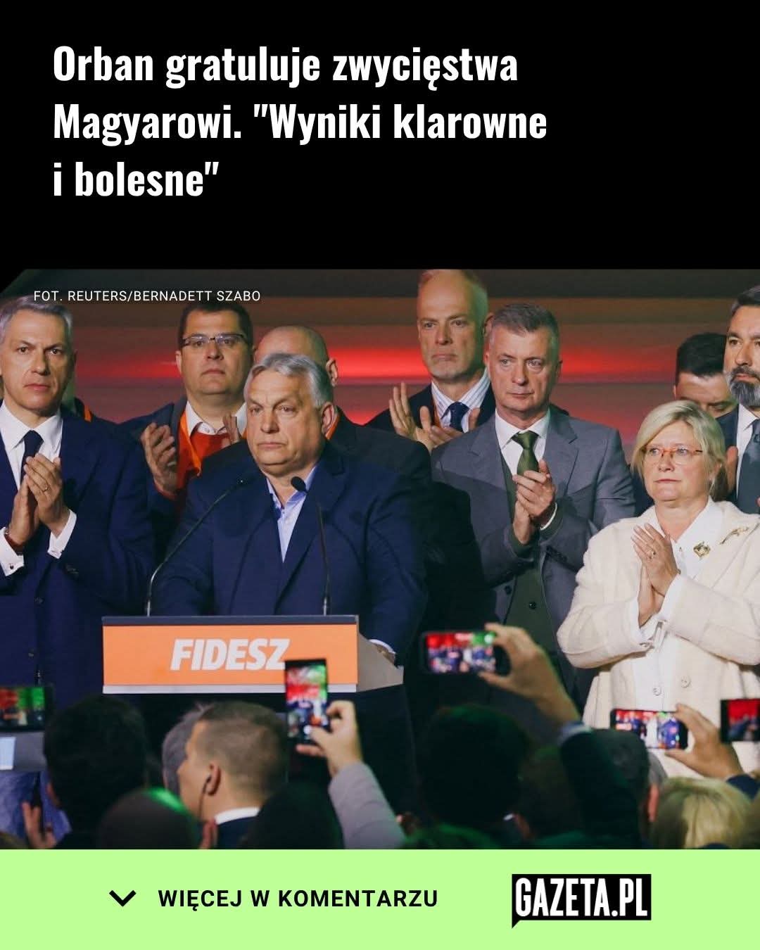 Wynik wyborów jest dla nas bolesny, ale jednoznaczny: nie dano nam możliwości sprawowania rządów – oświadczył Orban. Jak dodał, złożył gratulacje zwycięskiej partii Tisza Petera Magyara.