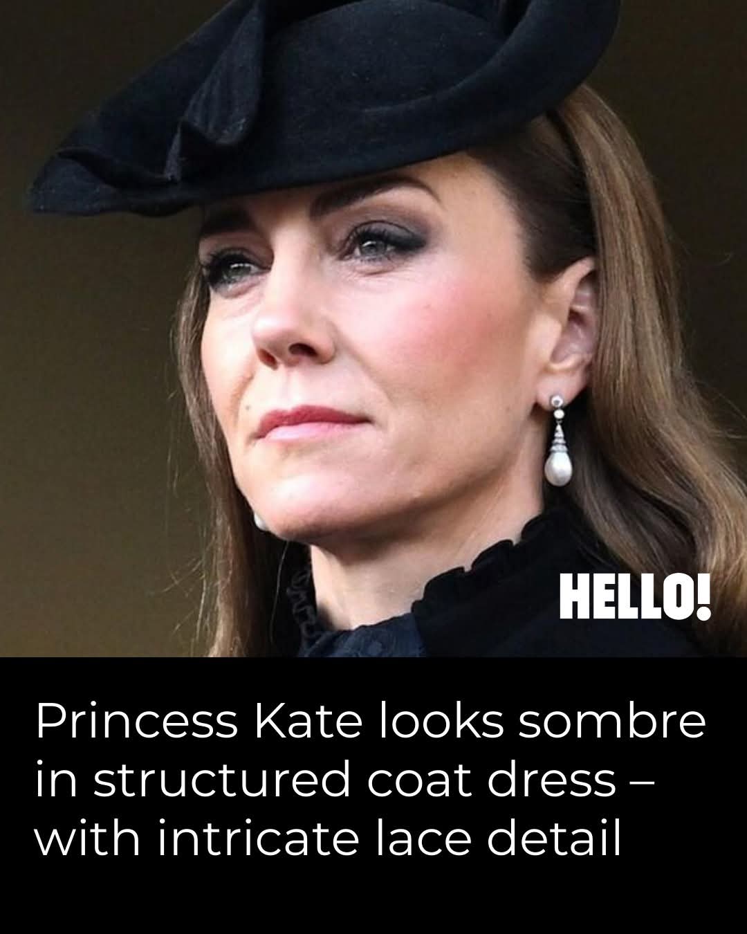 The Princess of Wales looked every bit the symbol of dignity and reflection as she stepped out in an impeccably tailored black coatdress, complemented by a wide-brimmed hat and her signature poppy brooch. Her understated style — a hallmark of her approach to royal duty — matched the tone of the occasion: solemn, respectful, and timeless.