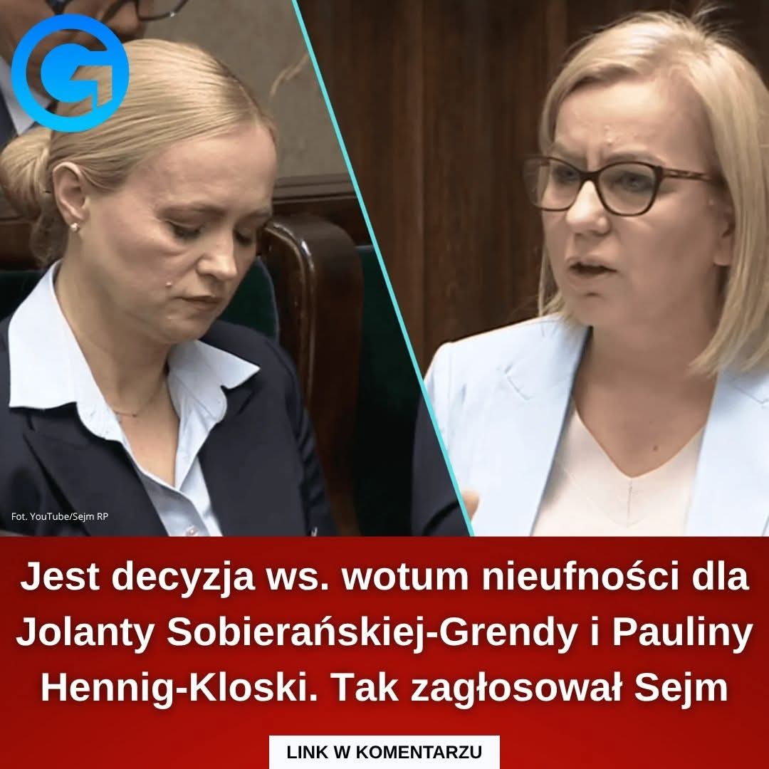 W czwartek Sejm Rzeczypospolitej Polskiej odrzucił wnioski o wyrażenie wotum nieufności wobec ministry zdrowia Jolanty Sobierańskiej-Grendy oraz ministry klimatu i środowiska Pauliny Hennig-Kloski. Jak wynika z oficjalnych wyników głosowań oraz danych Kancelarii Sejmu, obie polityczki utrzymały swoje stanowiska. Decyzje te kończą sejmową debatę nad przyszłością kierownictwa obu resortów