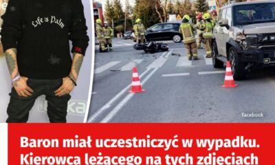 Baron miał uczestniczyć w wypadku. Kierowca leżącego na tych zdjęciach motocykla doznał obrażeń