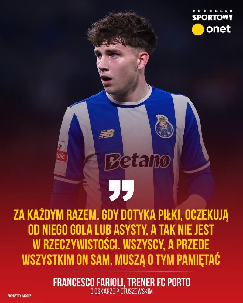 Trener FC Porto, Francesco Farioli, stanął w obronie 17-letniego skrzydłowego Oskara Pietuszewskiego, apelując o cierpliwość i wsparcie dla młodego Polaka. — Nie można oczekiwać, że będzie zdobywał punkty i asystował w każdej akcji — stwierdził szkoleniowiec jednego z najbardziej znanych portugalskich zespołów.